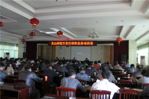 文山州校方責(zé)任保險業(yè)務(wù)培訓(xùn)會在文山市海威爾酒店七樓會議室召開