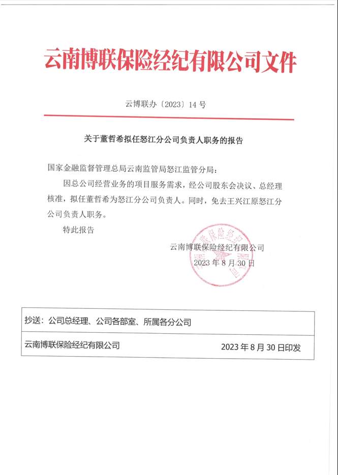 - 云南博聯(lián)保險(xiǎn)經(jīng)紀(jì)有限公司關(guān)于西